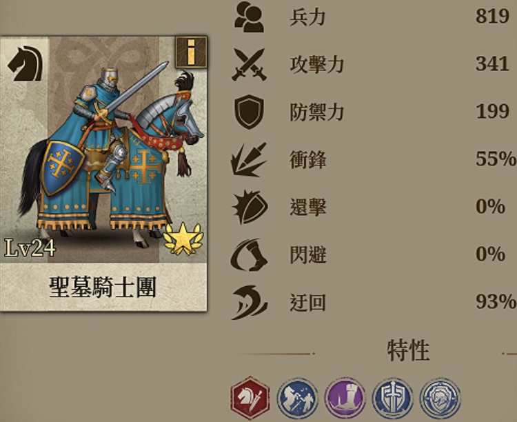 2、横刀营拥有唯一双地形减耗以及高额远程减伤使得其地位居高不下。但自身没有加伤特性,因此本体强度一般。相对容易养成的条顿武士和瓦兰吉卫队在没有唐包的前提下,优先级均比横刀营要高。不要升级5级天赋,浪费资源。