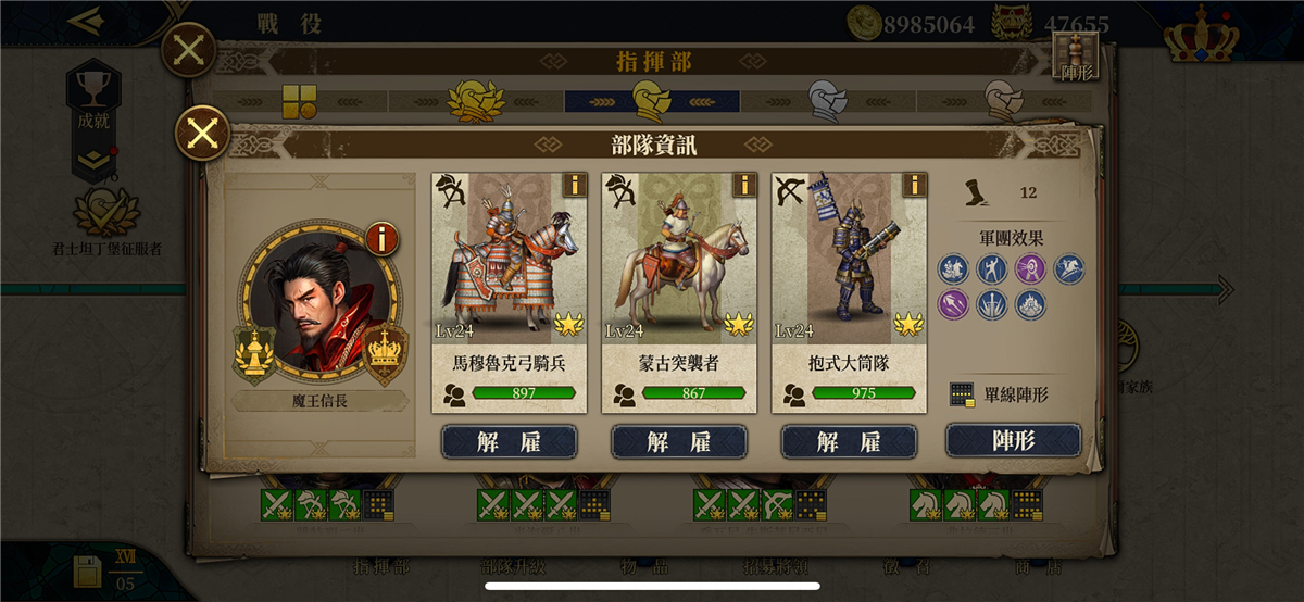 进阶:西辽重骑兵/近卫玄甲兵/圣墓骑士团。阵型选择两翼阵
