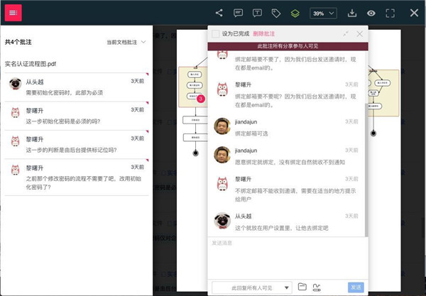 巴别鸟能直接在任何文档上建立讨论区,在同一个文档上与团队详细讨论问题,并能结构化管理讨论内容。更简单、直接。