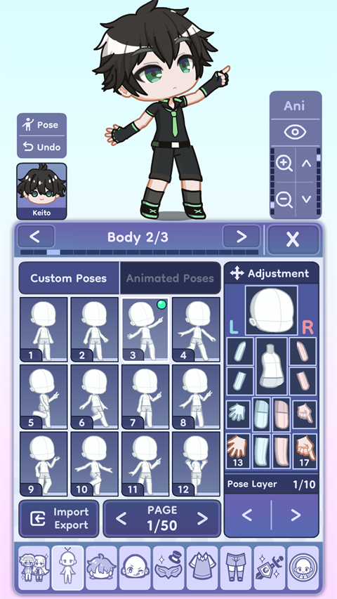 2、可以对人物的发型、衣服、表情、动作、眼睛等地方进行修改;