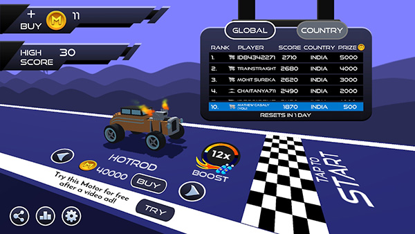 -降低了新电机的成本 -每次启动游戏时免费试用随机马达 -优化锦标赛以更快加载 -次要修复 -更新了应用内购买插件,以消除某些设备上的崩溃游戏截图
