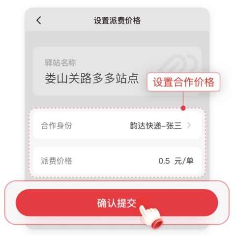 6、站点选择好后,设置合作价格,点击【确认提交】发起审批,然后需要提醒站点老板查看并审核。
