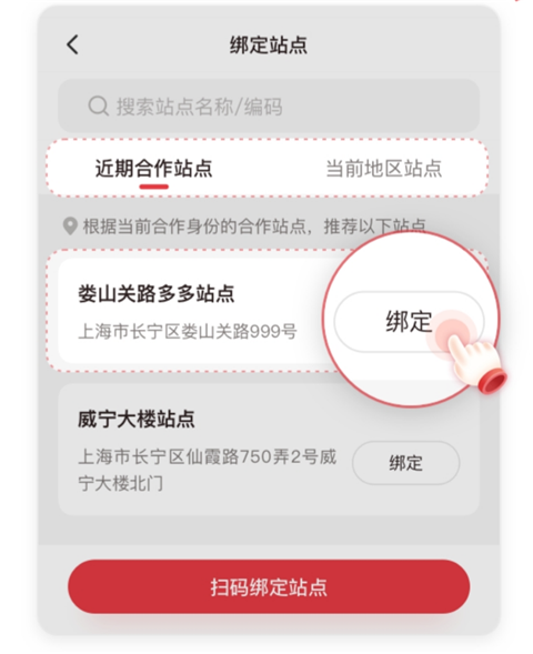 方式一:选择近期合作站点或当前地区推荐站点绑定。