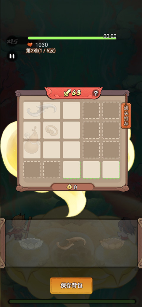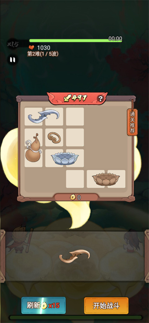 1、玩家进入关卡中,开局会随机给你法宝以及格子;