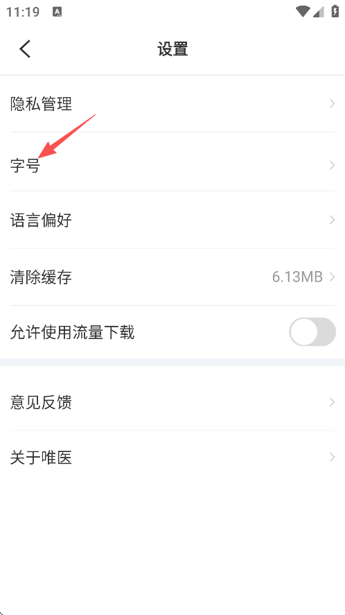 3、点击屏幕左侧的“字号”。