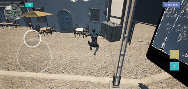 4、右边还有跳跃、下蹲键,帮助玩家知悉哪些地方可以快速通过,如果想回到初始点点击右上角的选项即可。