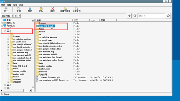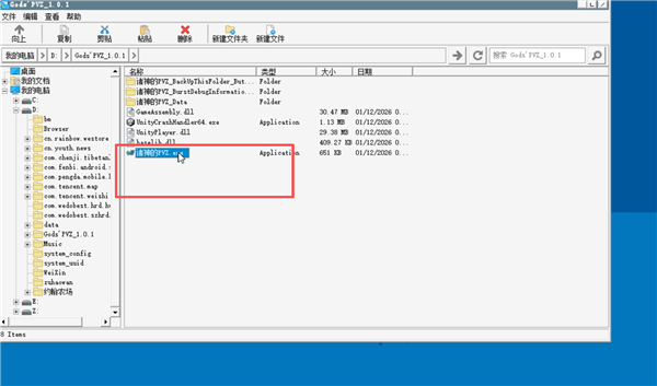 4、进入模拟器后找到D盘进入【Gods'PVZ_1.0.1】文件夹。