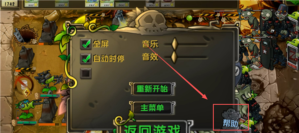 1、在植物大战僵尸诸神版手机版战斗中,点击【关卡】,选择【帮助】。