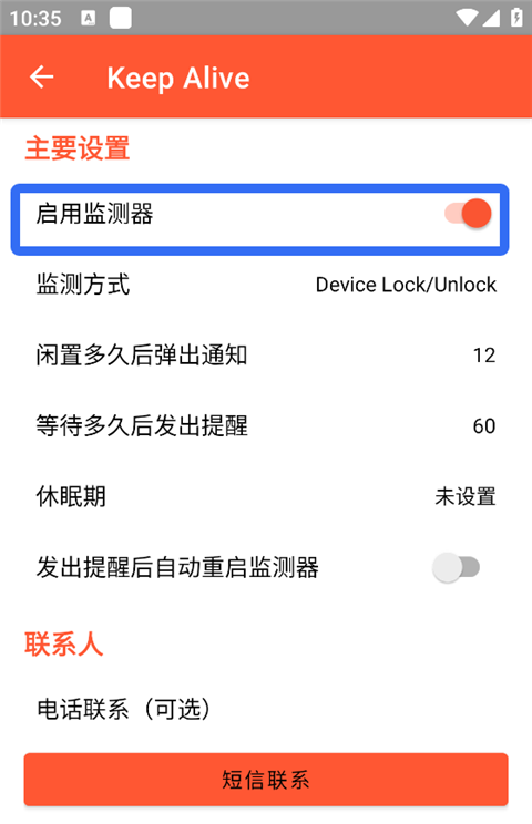 1、100%基于设备,无需云服务或账户。 2、免费,无广告或追踪。 3、极低的电池使用量。 4、多条短信接收者。 5、自定义警报消息。 6、可选:在短信中包含位置信息。 7、可选:开启免提通话。 8、可选:向自定义 URL 发送 HTTP 请求。死了么安卓版如何使用