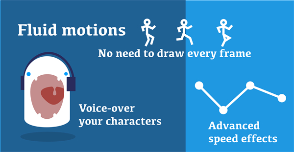 1、通过关键帧构建平滑动画。 2、嵌入的字符和项目库。 3、字符构造器(您可以从头开始创建项目或使用模板)。 4、为卡通片配音或添加音乐。 5、导出和共享视频文件(mp4格式)。游戏特色