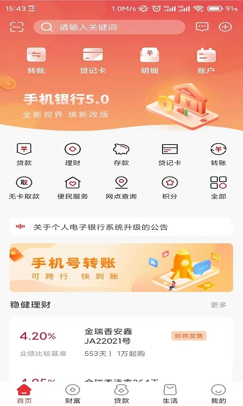 1、提供线上线下注册方式,支持多种证件客户注册使用; 2、支持线上渠道转账汇款、投资理财、贷款申请等多项业务,让客户足不出户享受到银行金融服务; 3、多种App版本,简洁版本UI简洁界面,字体放大,简化操作流程; 4、切实提升移动支付产品的便捷化,提供手势密码、指纹等便捷登录方式; 5、在提供数字化、个性化的综合金融服务基础上,为客户提供生活缴费、网点查询、便民服务等多项场景服务。赣州银行App如何查询网点?
