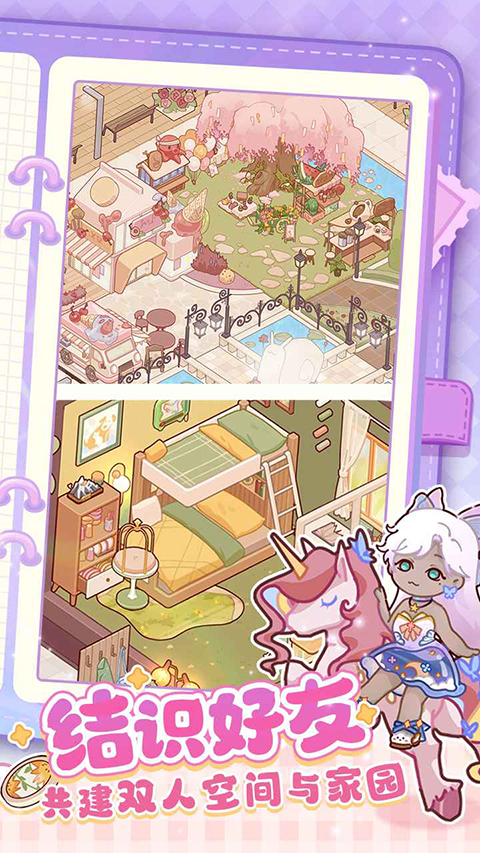 1.派对暖场功能:玩家选择可开启派对的指定户型后可邀请其他玩家进行派对暖场,完成暖场的户型后续可直接开启派对(等级40级解锁功能) 2.设计委托:新增设计委托玩法,解锁指定户型后可在任务清单中查看委托,根据委托留言进行装修设计(等级4级解锁功能) 3.闲菜二手:新增背面家具6件 4.npc拜访:拓展npc拜访奖励 5.双人空间:新增双人空间共享仓库 功能优化 1.家园系统:优化成员显示,园长与副园长可见成员上线与离线时间 2.家园互助:优化消息红点提示 3.家具工坊:优化家具数量显示 4.装修预览:优化预览信箱装修,默认家具处于视角中央 5.朝夕渔店:优化收杆按钮位置,自动钓鱼图标位置与键入鱼饵数量位置 6.限时活动-对对碰:优化关于放大镜的上限规则显示并增加提示功能游戏截图