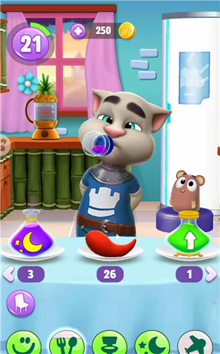 我的汤姆猫2中需要陪小猫玩耍、喂他吃饭、帮他洗澡,适时让他睡觉。当等级越来越高后,猫就会变得越来越大,小编就来讲一讲我的汤姆猫2如何变婴儿。 如果想要变婴儿的话,有一个关键道具,它就是婴儿药水。