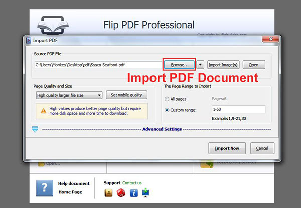 启动Flip PDF Professional程序,单击“新建”按钮,然后单击“浏览..”以从计算机中选择PDF文档。您也可以导入图像以在Flip PDF Pro中创建相册。