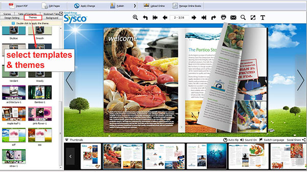 在Flip PDF Pro中,您不仅可以为书籍选择Flash预加载器,还可以使用不同的模板来呈现具有不同布局和工具栏功能的活页簿。您可以使用数十种模板设置来自定义时尚的电子书。多个预先设计的模板,主题,场景和背景可以直接使用。您还可以在书中添加插件:横幅,新闻旋转器,图像滑块,音乐播放器,视频横幅等。现在还有许多在线资源可供使用:多个模板,400多个主题, 200多个场景和700多个背景。将来会发布更多令人惊叹的模板和其他资源。