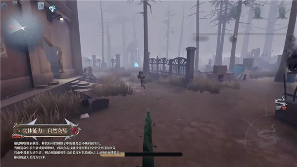 可吸收半径1.5米圆形区域内的自然元素并令该区域产生持续12秒的枯萎效果,当求生者进入枯菱区域后会被藤墓束缚2秒。吸收成功后获得能力-白然交易。