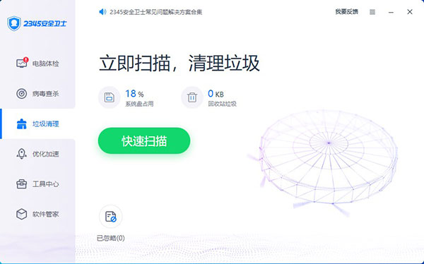 5、垃圾清理,简单的来说就是该安全卫士可以自动帮你清理你系统内部的文件垃圾,彻底优化你的系统及磁盘资源