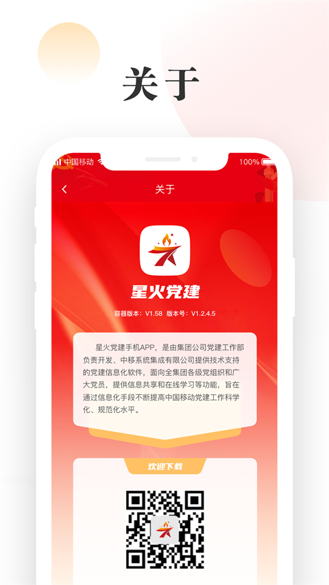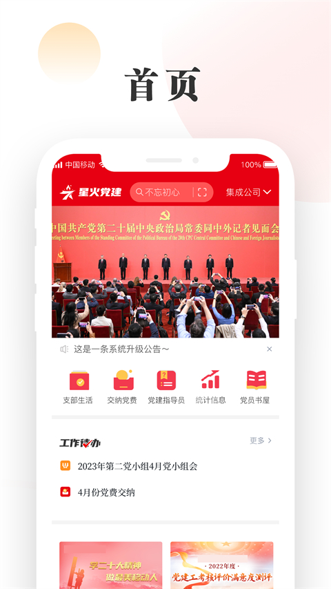 1、组织建在线上 多权限层级化管理,将组织建在线上。 2、党员实时在线 严格依据党章党规,要求紧密贴合党建工作实际。 3、多维数据精准施策 满足不同工作场景需要让党组织决策有依据、考核有标准、对标有方向。 4、权威资源赋能组织 定期开展“送党课进基层”活动助力基层提升党建水平。中移星火党建App登录说明