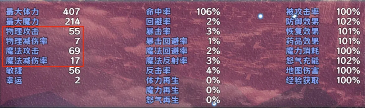 B受到的魔法伤害=A的魔法攻击×(100-B的魔法防御)÷100