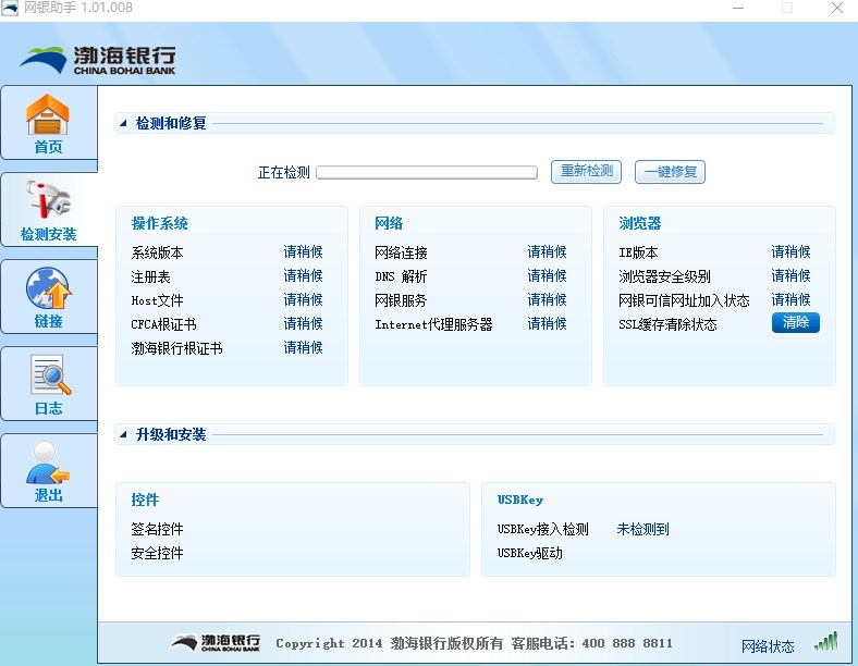 渤海银行网银助手是一款在渤海银行网页中使用的安全辅助软件,主要为开通了渤海银行网上银行的用户开发,为用户提供一个安全的网络支付环境。软件提供了账户查询、转账缴费、个人理财、客户服务等功能,还有对于注册表、host文件、签名控件和安全控件等重要部件的安装和修复,是渤海网上银行必装的组件,不过这款软件目前只支持IE浏览器的使用。