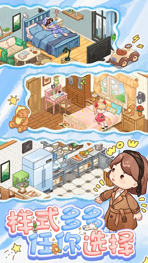 1、【接管事务所】 神秘小狗认定你就是全宇宙最厉害的装修大师,小小事务所从天而降!虽然名不见经传,但总有各色委托人找上门来,承接各种温馨或者奇葩的委托,满足客户的奇思妙想。 2、【买买买就对了!】 接到订单,就该大展身手啦! 超市扫货,任性挑选! 地砖、墙纸、灯、家具、电器……品类多到眼花!想给卧室铺满粉色毛绒地毯?没问题!要在厕所里装个75寸豪华大电视?安排! 自由摆放,创意无限! 客厅里塞五台电脑,开黑开黑!卫生间,双马桶,好朋友,一起拉屎一起走! 风格拿捏! 复古、中式、赛博朋克……甚至“灾难现场风”,只要你敢装,客户都敢住!(大概吧) 3、【客户验收,惊喜or惊吓?】 你的装修方案能否征服客户? “意外”之喜:本以为他们会崩溃,结果拍照上传社交平台,一夜爆红! 社交媒体狂欢:客厅变网吧,厕所成聊天室,网友们热议不止,你的设计引领潮流!筑梦事务所客户介绍