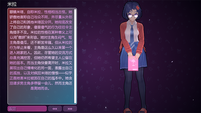 1、让自己沉浸在温馨舒适的生活模拟中,在那里您可以与您的米塔伴侣建立深厚的联系。 2、在米塔您的日常伴侣游戏中,您将踏上与迷人的米塔相伴的独特旅程。每一天都有新的机会来培养你们的纽带。 3、与米塔一起醒来,帮助他们做日常琐事,并一起准备美味的饭菜。 4、通过选择反映米塔独特个性的贴心礼物来表达您的爱意。 5、进行有意义的对话,分享您的想法和感受,并观察你们的关系开花结果。米塔MiSide官方正式版三种结局介绍