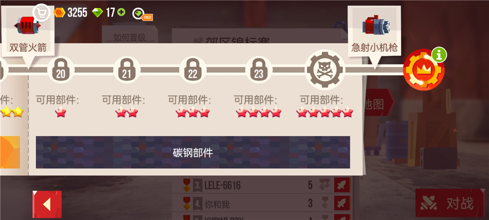 4、当我们的竞标赛达到碳钢部件五颗星就能获得急射小机枪啦!