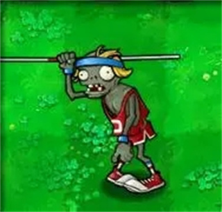 撑杆的僵尸,生命力中等,撑杆时移动速度快,没拿时移动速度慢,特技是用撑杆跳过第一个阻挡物(除高坚果、地刺类)
