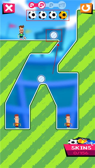 2、拖动屏幕根据线条来瞄准目标,将足球命中目标即可。