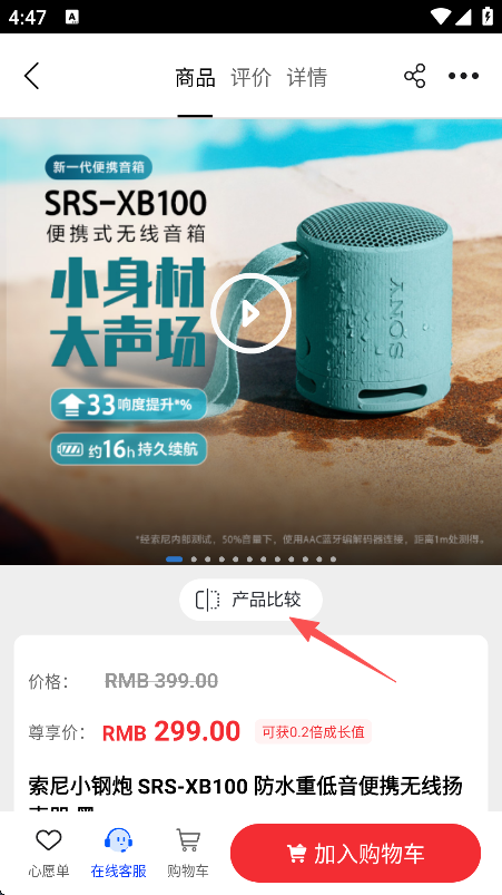 1、首页UI改版 新增免息分期、限时特惠板块,更新产品瀑布流展示,优化用户体验。 2、轻松购物 不在电脑旁? 照样轻松下单完成购物,支持花呗,银联分期付款方式。 3、索尼会员功能 会员注册,查看订单状态、优惠券,修改个人资料、收货地址,了解会员优惠促销信息。索尼中国App怎么比较商品