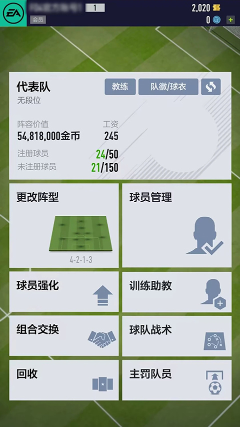 5、在球队管理中你可以对球员进行更细节的调整,包括阵型、场上人员和球员的强化。