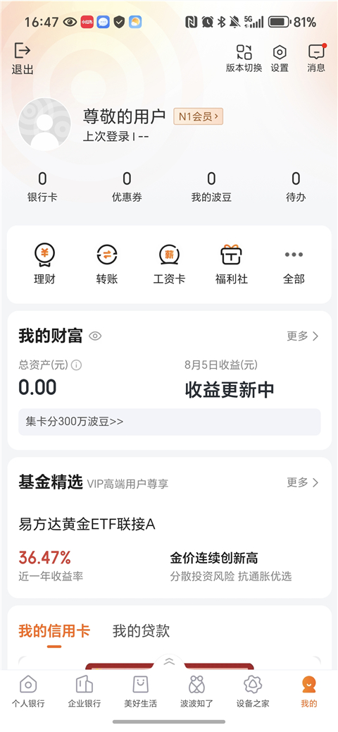 个人客户的优质金融服务平台,打造四类客户专版:标准版,简单直接、享基础服务上手快;白金版,全旅程财富陪伴服务,助力财富稳健增值;私银板,全新综合化、全天候的尊享体验;信用卡版,便捷用卡、畅享优惠。
