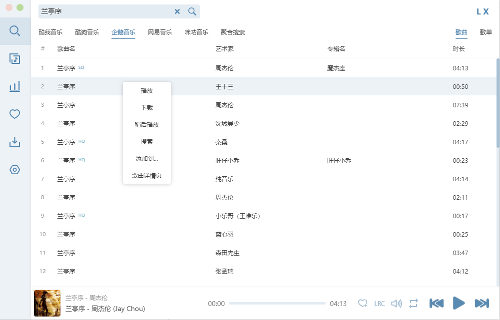 5、随后洛雪音乐助手就快速搜索出了一堆歌曲,找到你想听的那一首即可播放