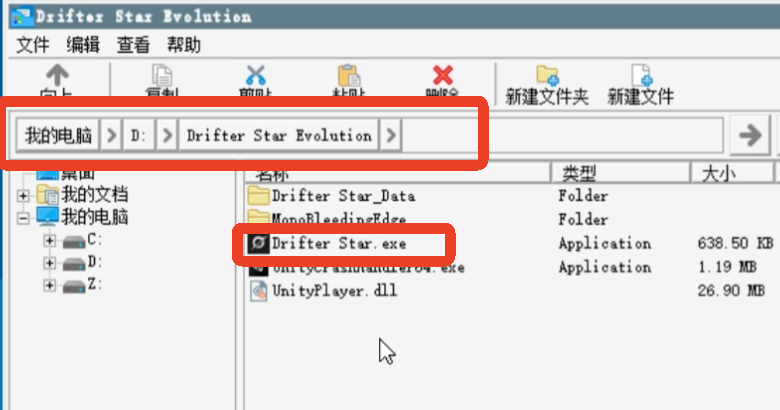 6、进入后找到【D盘】-【Drifter Star Evolution】,双击【Drifter Star.exe】即可开始游玩。双击后需要等到一会,开启会比较慢。