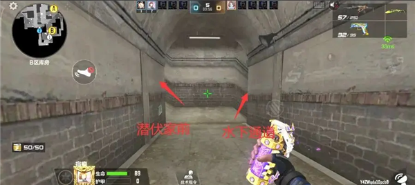 A小道的进攻点位大致没变,潜伏者从复活点左侧直接进入A小道,可以直达A包点,不过需要注意中路是否有保卫者蹲点偷袭,由于小道点位较为狭窄,建议静步慢慢搜点,不然很容易被“老六”偷袭。