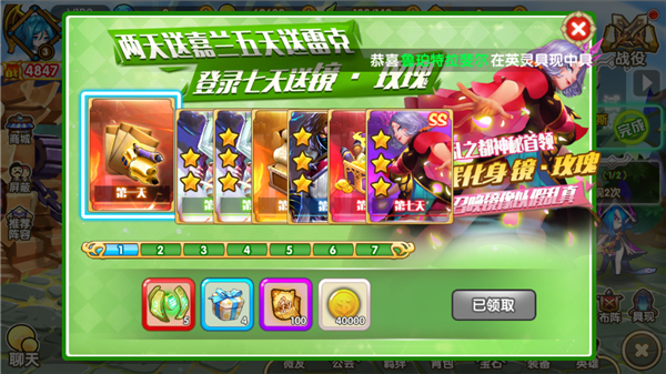 1、海量福利,全场0.1折。 2、登录第二天送森灵之女嘉兰。 3、登录第五天登录送暮色之光雷克。 4、登录第七天登录送镜玫瑰。 5、第七天目标奖励,主角直达三星。 6、首充即送绯红之星露琪亚。 7、全服返利,最高累计返还100000钻石。冒险与推图0.1折手游叠毒流体系阵容