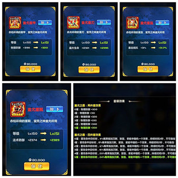 一、【规则介绍】 1、宝物材料来源于世界地图中的怪物讨伐与运营活动 2、每个武将最多可穿戴四件不同部位的宝物 3、宝物强化:强化需消耗银两,强化能提升宝物属性 4、武将身上四件宝物均强化到一定等级可激活强化大师属性 5、宝物升星:橙色与红色宝物强化到一定等级,可进一步提升宝物属性 6、武将同时佩戴同套宝物的四个部位,可激活套装属性加成 7、佩戴同套宝物星等越高,能发挥的套装属性越强 二、【宝物分类】 宝物分为绿色宝物、蓝色宝物、紫色宝物、橙色宝物、红色宝物五个级别 绿色宝物:神荼宝物与刑天宝物 蓝色宝物:应龙宝物与魔猿宝物 紫色宝物:精卫宝物与神农宝物 橙色宝物:伏羲宝物、罗睺宝物与女娲宝物 红色宝物:蚩尤宝物、轩辕宝物与天尊宝物