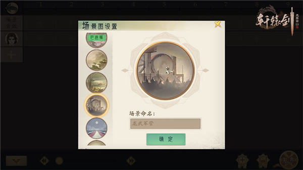 顷刻间千秋事业,方丈地万里江山。戏台上的大幕一放一收,时空切换,而演员所在的场景,则通过戏台背景的挂画表现。游戏内提供了深山、湖泊、军营、禁宫等多种场所,支持自定义名称的戏剧场景表达。