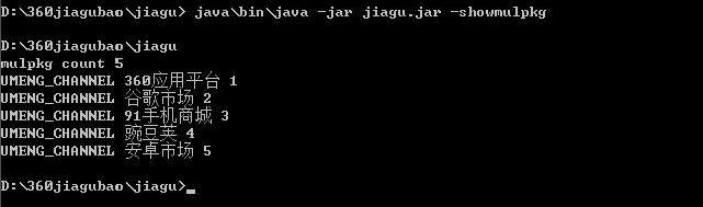 查看当前渠道信息“java\bin\java -jar jiagu.jar -showmulpkg”