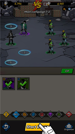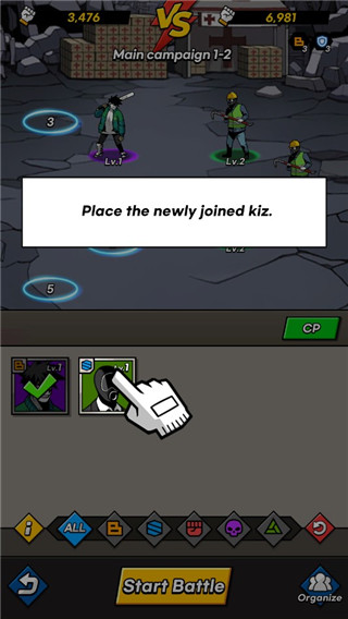 1、在点击了主页的【开始战斗】后,将已有的角色上阵。