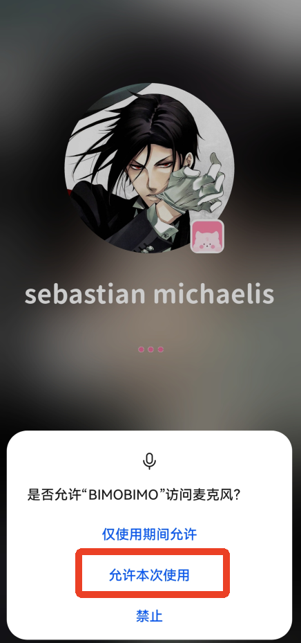 3、允许bimobimo访问手机的麦克风,点击允许本次使用。