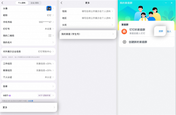 仅支持家庭管理员重置密码,可根据以下方法操作: 进入 手机端钉钉 > 我的界面,选择 设置与隐私 > 我的信息 > 更多 > 我的家庭(学生号)> 进群。
