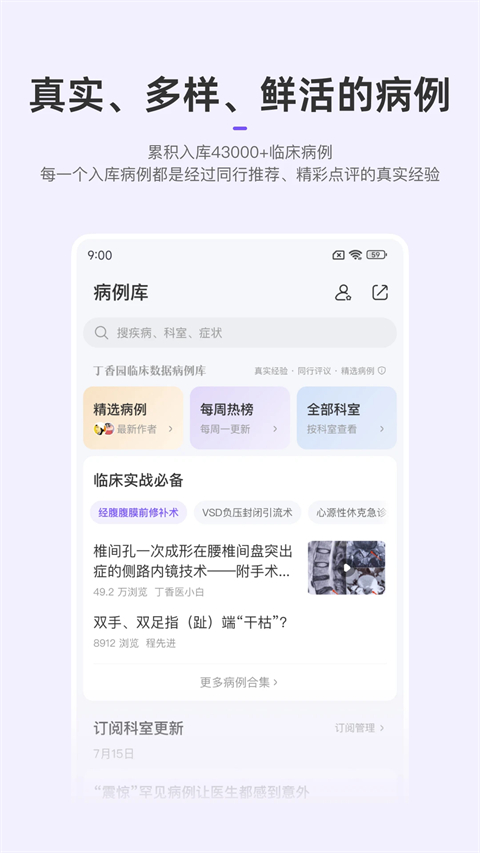 【临床经验】 全国最大的专业医学社区。 医生同行、专家前辈都在这里。 【病例讨论】 常见病、罕见病、各类典型病例。 海量医学影像资料轻松搜索 随时讨论。 【考试晋升】 经验帖、干货帖、精华帖、避坑指南一网打尽。 更有重量级专业课程指导,重点难点轻松get。 【课程学习】 临床课程、科研课程、医考课程、各种公开课尽在掌握。 海量优质医学课程,丁香公开课等你来学习。 【用药助手】 覆盖国内 99% 药品数据,药监局药品信息实时更新。 4000+疾病知识库,覆盖 90% 临床常见疾病,满足各大科室查疾病需求。 收录国内外权威机构发布的指南、专家共识,一站搜索,支持下载分享。软件优势