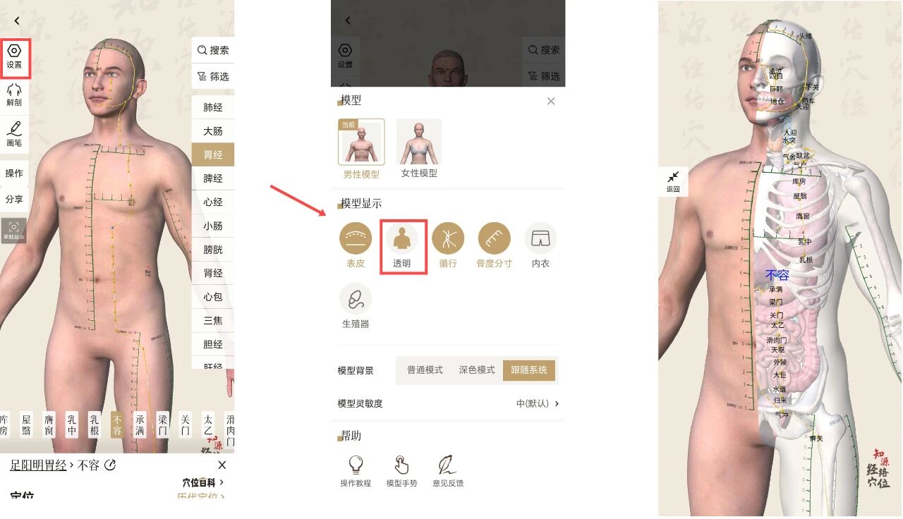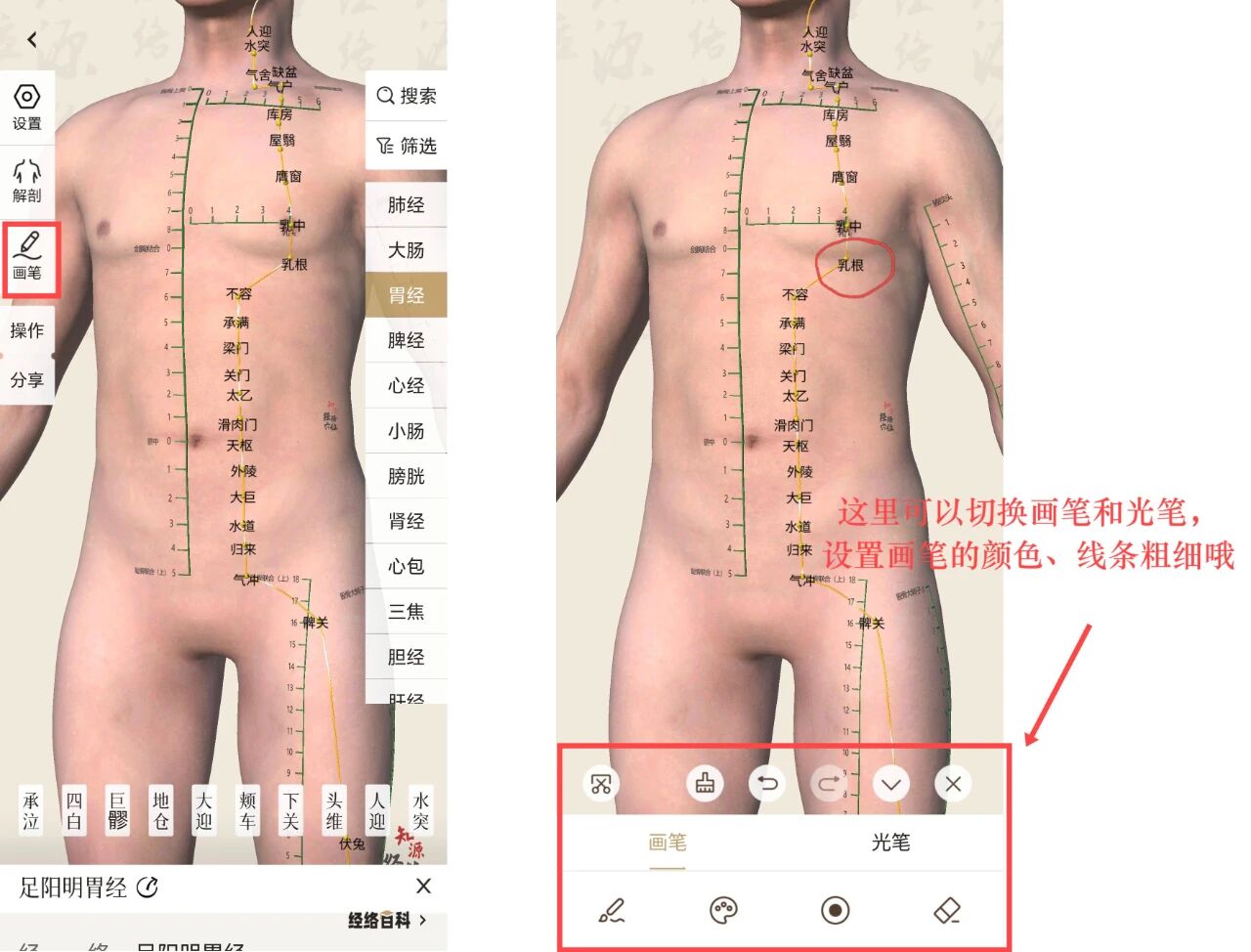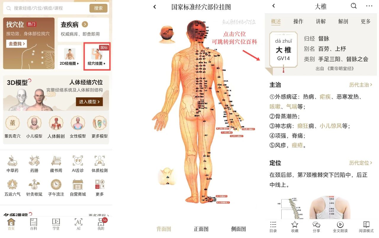 第二步:打开经穴挂图,通过双指操作,可以放大缩小挂图;