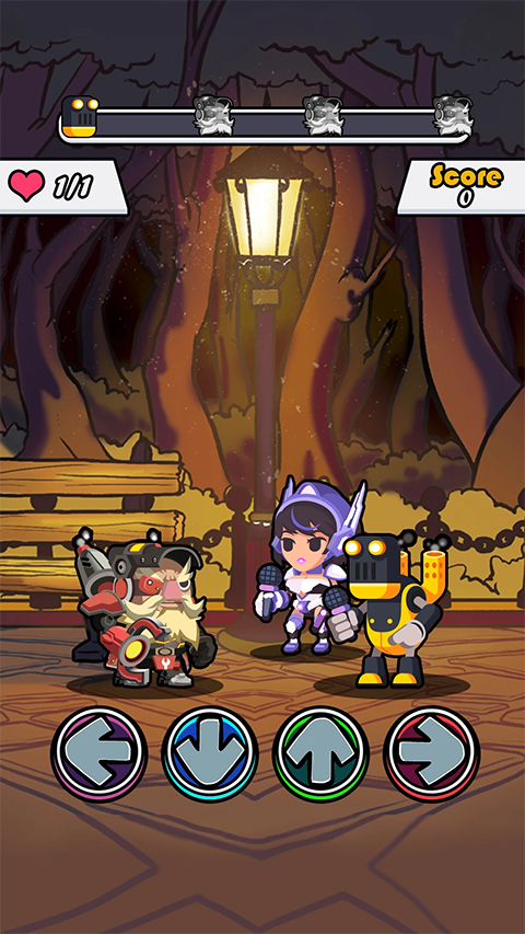 玩家操作角色在确切的节拍上点击确切的箭头,游戏的操作相对来说非常的简单,但是随着游戏的进度越快,操作起来会手忙脚乱。