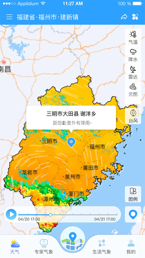 1、支持福建省内各地市天气实时预报全省天气情况综述整点实况趋势图生活指数提醒。 2、支持福建省内未来一周天气预报,省外3天天气预报,可通过设置亲情城市关注亲人所在地天气。 3、专业气象信息,福建省三大海域气象气象雷达卫星云图台风路径图雨情温度统计数值预报一应俱全。 4、向用户发送省级预警信息,并依据用户选择的默认城市,发送市级县级预警信息,让用户及时掌握气象灾害,防患未然。更新日志