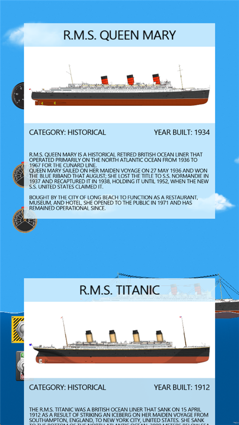 3、进入船只界面,这里有多艘船只供选择,例如我们可以下滑选择这艘泰坦尼克号。