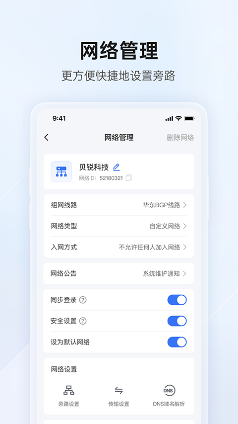 1、私有局域网 好基友平时爱打boss,快速组建个人局域网,实现多人联机游戏,畅享游戏快感,再无乱入情况,基情不降温。 2、旁路模式 无需改变现有网络,即可实现远程访问、内网穿透,超级方便! 3、异地组网 可用于各地分公司办公系统、物流仓储管理系统、连锁酒店门店管理系统维护和搭建。让物联网无处不在。 4、私有云盘 网盘限速?异地出差忘文件?一步搭建私有云,异地文件共享,轻松实现多地文档、重要数据、文件等资源共享,数据传输,支持随时随地互传,快传。 5、视频监控 实时了解各分支公司的运营情况,随时远程查看各分支的运营详情、视频监控等。 6、移动办公 出差异地办公,访问公司OA、ERP、CRM系统、文件服务器等。更新日志
