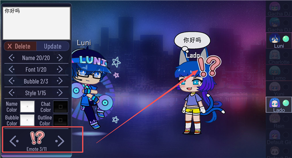 6、下方的【Emote】可以为角色添加一点符号表情。