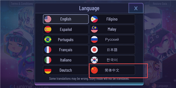 1、打开加查俱乐部官方正版游戏,游戏加载界面右下角Language。